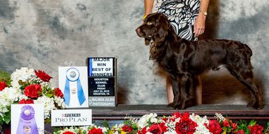 Sunny is a HRCH "Boo" MHA and Weber's Babe's Brandy girl. She is ranked by the AKC in the Top 20 Fastest Boykin Spaniels. She was ranked the Number 1 Fastest Boykin Spaniel in 2022. She loves to swim and enjoys going after the ducks. Her mother Brandy won a Major Win at the Houston Kennel Club conformation. Her father Boo is one of the most outstanding flushing, retrieving, and all around hunting dogs there is in the world.
